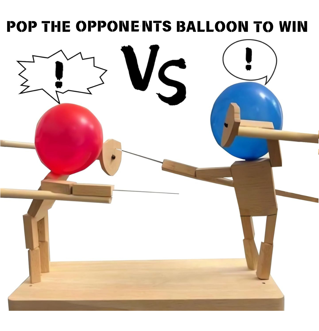 Get ready for non-stop Christmas fun with the Balloon Duel Battle Game, a hands-on wooden tabletop toy that turns any gathering into a hilarious balloon-popping showdown! Each player controls a wooden “fighter” armed with a lance and shield, trying to pop the opponent’s balloon first. It’s simple, safe, and incredibly addictive — perfect for kids, teens, adults, and even office party competitions.
